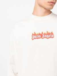 logo-print crew neck sweatshirt Italian label Palm Angels draws its streetwear style inspiration from American subcultures, namely the skater culture in Los Angeles. Cut for a relaxed fit, this sweatshirt is adorned with the brand's lettering surrounded by flames printed on the front. Made in Italy Composition Cotton 100% Trims: Cotton 100%