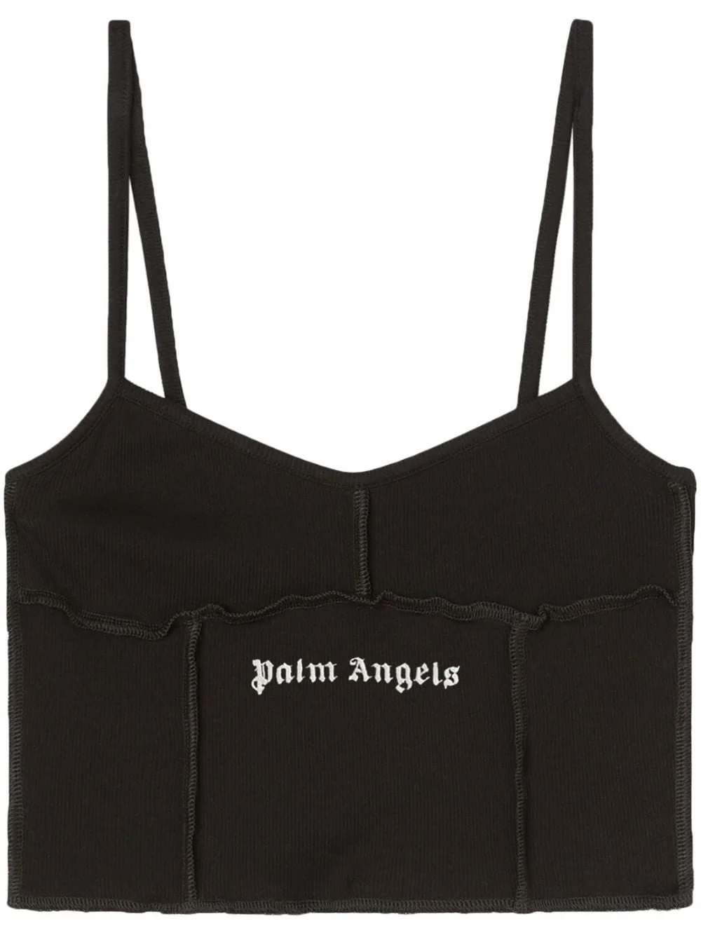 logo-print crop top Inspired by the brand's celebrated streetwear, this Palm Angels top is crafted in Italy from stretch-cotton to a close, cropped silhouette. It's detailed with raised seams and is stamped with white logo lettering at the front, adding a mark of identity. Highlights - Black - Stretch-cotton - Ribbed detailing - Logo print to the front - Exposed-seam detailing - Thin shoulder straps - Sleeveless - Straight hem - Cropped Made in Italy Composition Cotton 97%, Spandex/Elastane 3% SIZE & FIT FittingInformation Designed for a close fit throughout This piece fits true to size – take your usual size