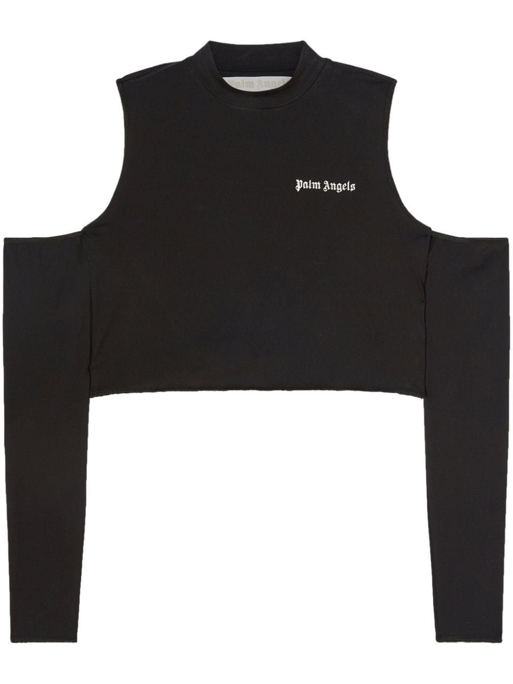logo-print cut-out top Inspired by the Los Angeles skateboard scene, this top from PALM ANGELS ties in with current branding trends through the use of a logo print on the chest. The cold-shoulder design and cropped length add a daring touch. Highlights - Black/white - Stretch-cotton - Logo print at the chest - Mock neck - Cold-shoulder design - Long sleeves - Straight hem - Cropped Made in Italy Composition Cotton 90%, Spandex/Elastane 10% SIZE & FIT FittingInformation Cropped in length