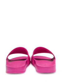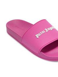 logo-applique flat slides Palm Angels’ logo is appliqued across the top strap of these fuchsia pool slides in signature Old English lettering for a touch of gothic detail. Highlights - Fuchsia pink/white - Applique logo - Round open toe - Slip-on style - Moulded footbed - Flat rubber sole - When buying this unisex item, keep in mind that it is graded in standard men's sizing. Made in Italy Composition Sole: Polyethylene 100% Outer: Polyurethane 85%, Polyethylene 15% Lining: Polyethylene 100%