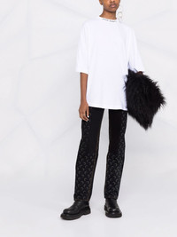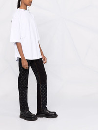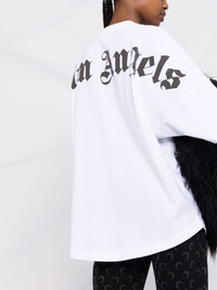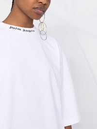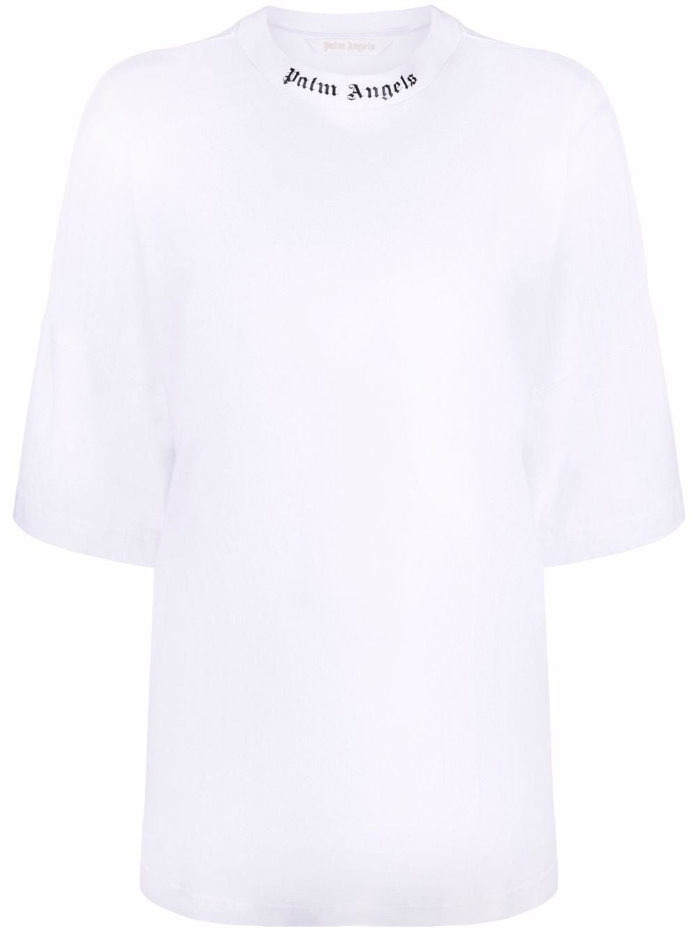 logo-print high-neck T-shirt The oversized silhouette of this Palm Angels white T-shirt is a sign of the brand's LA skate culture inspirations. Crafted from lightweight cotton with a high neck, it is adorned with the gothic font logo that draws flashes from rebellious and tattoo-art aesthetics. Imported Composition Cotton 100% SIZE & FIT Model measurements Height 5 ft 9 in(1.76 m) Bust/Chest 33.07 in(84 cm) Hips 34.64 in(88 cm) Waist 25.59 in(65 cm) FittingInformation This piece fits true to size. We recommend you get your regular size Cut for an oversized fit Made with a mid-weight fabric Washing instructions Hand Wash
