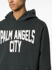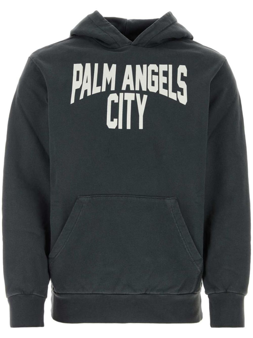 logo-print hoodie Cut from soft cotton in a deep grey hue, this Palm Angels hoodie is emblazoned with the brand's PA City logo across the front, reflecting a relaxed Los Angeles-inspired aesthetic. Highlights - Dark grey - Cotton - Jersey texture - Classic hood - Long sleeves - Ribbed cuffs and hem - Logo print at the chest - Front pouch pocket - Mini logo tag to the side - Internal logo tag - Straight hem Made in Italy Composition Cotton 100% Washing instructions Read Manufacturer Guidelines