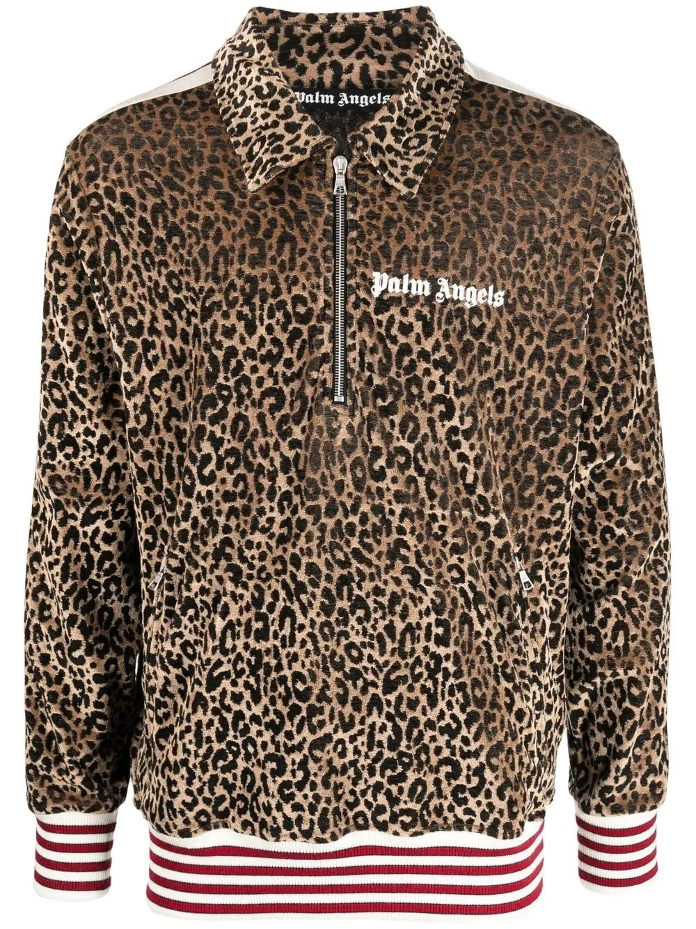 Logo-Print Striped Leopard-Print Velour Half-Zip Track Jacket