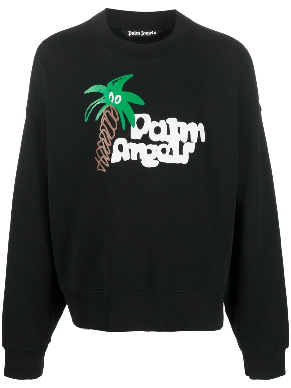 logo-print organic cotton sweatshirt Boasting a logo-print design to the front, this organic cotton sweatshirt is elevated by the familiar palm tree print in a bold sketch style. The crew neck silhouette reflects the brand's streetwear ethos. Highlights - Black/multicolour - Organic cotton - Logo print to the front - Palm tree print - Crew neck - Long sleeves - Straight hem Imported Composition Organic Cotton 100%, Polyester 100% SIZE & FIT Model measurements Height 6 ft 1 in(1.85 m) Bust/Chest 35.82 in(91 cm) Hips 37.79 in(96 cm) Waist 29.13 in(74 cm) FittingInformation Designed for an oversized fit, offering additional room throughout Made from a midweight non-stretch fabric, this piece offers minimal elasticity when worn This piece fits true to size – take your usual size Washing instructions Hand Wash