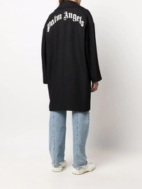 logo-print oversized coat Founded in 2105, Palm Angels offers an Italian perspective on American subcultures with their cutting-edge designs. Spun from a wool blend, this coat is cut for an oversized fit and is emblazoned with the brand's logo on the rear, for a contemporary spin on classic outerwear. Made in Italy Composition Outer: Wool 50%, Acrylic 23%, Polyester 22%, other fibers 5% Lining: Viscose 100%