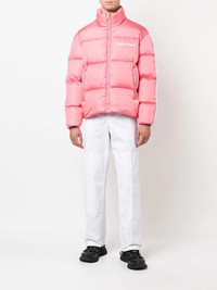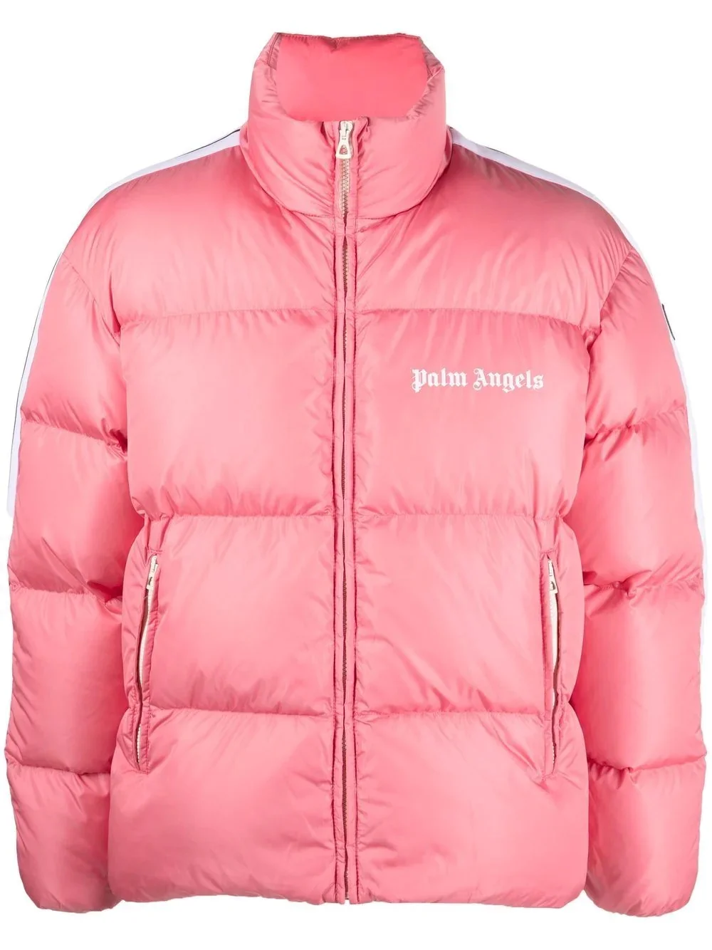 logo-print padded jacket Palm Angels presents a sports-inspired design with this padded jacket. This modern iteration is decorated with side stripe detailing for a sporty touch, whilst the label's logo print appears at the chest for a branded finish. Imported Composition Outer: Polyamide 100%, Polyester 100% Lining: Polyamide 100%, Duck Feathers 100% SIZE & FIT Model measurements Height 6 ft 2 in(1.87 m) Bust/Chest 35.82 in(91 cm) Hips 35.82 in(91 cm) Waist 29.52 in(75 cm) Measurement CHEST 48.03 in(122 cm) FittingInformation This piece fits true to size. We recommend you get your regular size Cut for a loose fit Made with a mid-weight non-stretch fabric Washing instructions Machine Wash