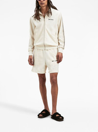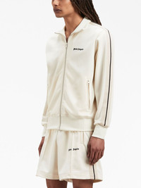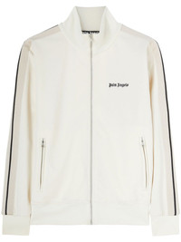 New Classic track jacket Palm Angels channels its streetwear-inspired aesthetic with this zipped sweatshirt, thanks to side stripe detailing and a logo print to the chest for a branded finish. Highlights - White/black - Stand-up collar - Side stripe detailing - Front zip fastening - Two side zip-fastening pockets - Long sleeves - Ribbed trim - Straight hem Made in Italy Composition Lining: Polyester 100% Outer: Polyester 100% SIZE & FIT FittingInformation Designed for a regular fit, offering a comfortable loose fit throughout the body This piece fits true to size – take your usual size