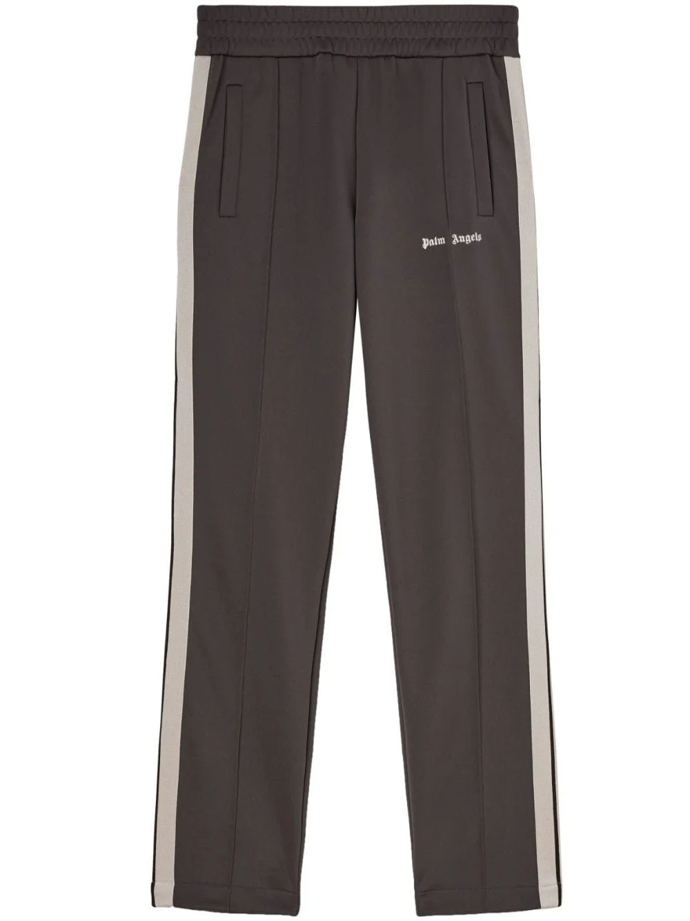logo-print side-stripe track pants Palm Angels channels its streetwear-inspired aesthetic with these dark-grey track pants, thanks to their side stripe detailing and a logo print to the side for a branded finish. Highlights - Charcoal grey - Elasticated waistband - Logo print at the leg - Two side slit pockets - Side stripe detailing - Straight leg Made in Italy Composition Outer: Polyester 100% Lining: Polyester 100%