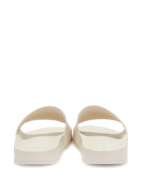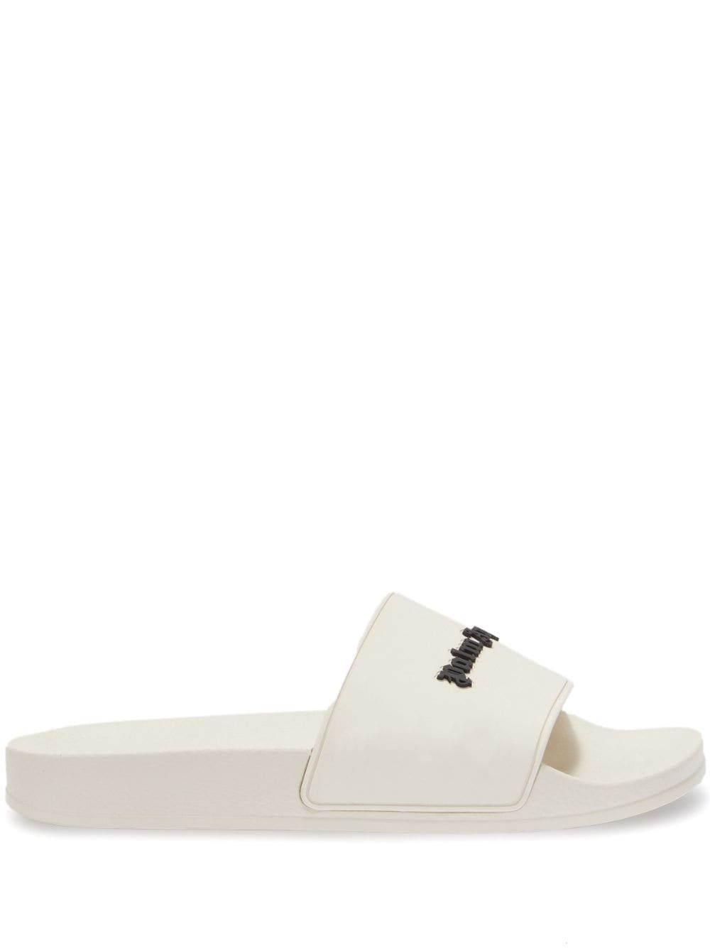 logo-print slides A black logo adds a typical Palm Angels finish to these slides from the brand’s latest collection. It completes a practical slip-on design, adding a signature finish to its laid-back identity. Highlights - Light beige - Embroidered logo to the front - Open toe - Branded insole - Flat sole - Slip-on style Made in Italy Composition Other fibres 100%
