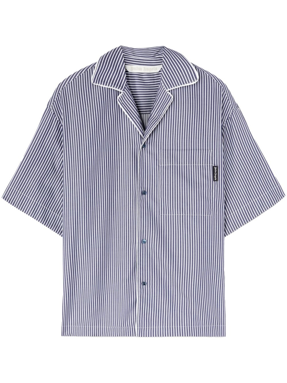logo-print striped shirt Highlights - Navy blue - Front button fastening - Logo print to the rear - Stripe print - Chest patch pocket Imported Composition Cotton 100%