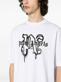 Paris monogram-print T-shirt Palm Angels leans into its streetwear aesthetic with this white T-shirt. It’s crafted from cotton and accented with gothic-inspired logo lettering atop a graffiti motif. Highlights - White - Cotton - Soft jersey - Crew neck - Logo print at the chest - Graffiti print - Text print - Short sleeves - Straight hem Imported Composition Cotton 100% SIZE & FIT Model measurements Height 6 ft 1 in(1.85 m) Bust/Chest 36.22 in(92 cm) Hips 36.22 in(92 cm) Waist 27.55 in(70 cm) FittingInformation Designed to be unstructured, offering a loose fit throughout Made from a midweight non-stretch fabric, this piece offers minimal elasticity when worn This piece fits true to size – take your usual size Washing instructions Hand Wash