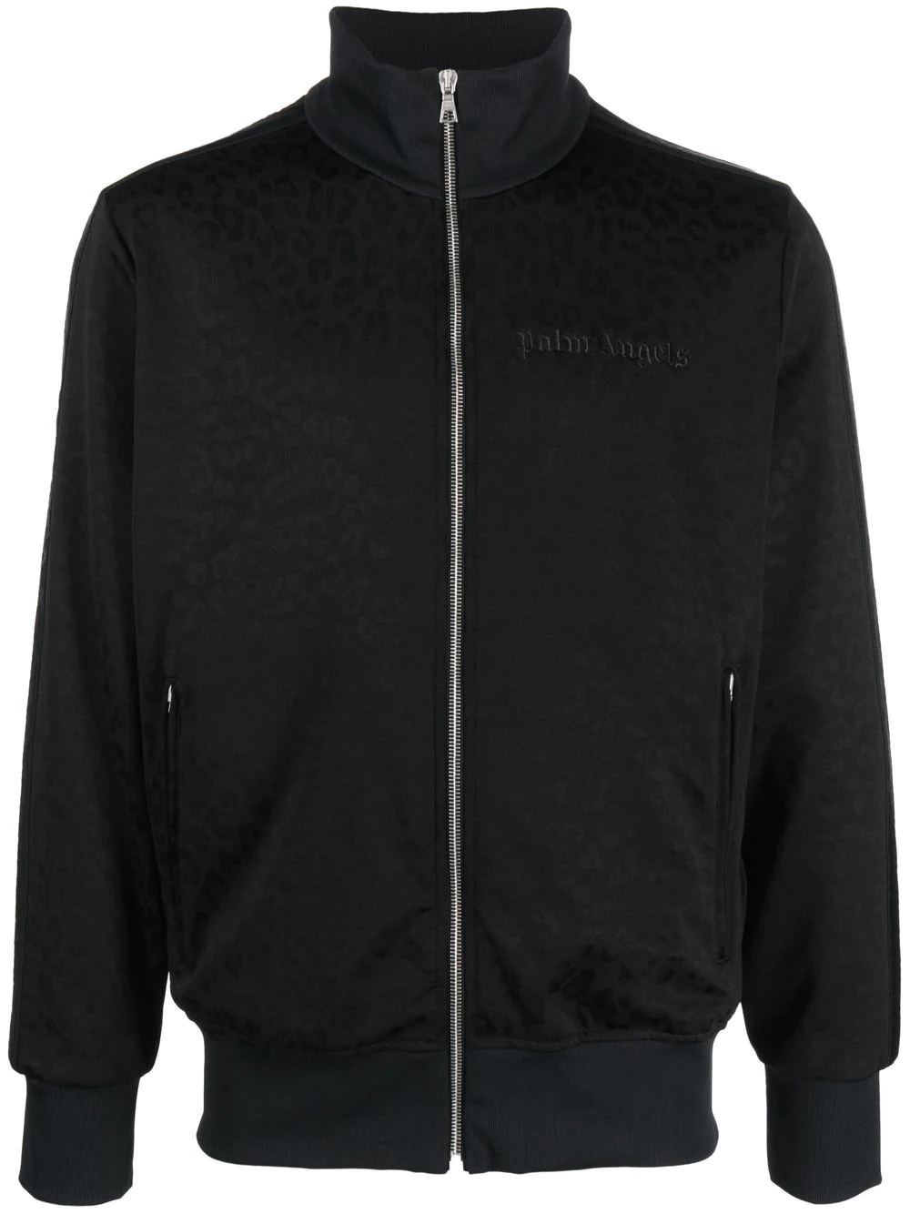 logo-print track jacket In a refined tonal design, this track jacket by Palm Angels is decorated with a leopard motif throughout. The black design features a logo print and side stripe detailing, which emphasises their sporty feel. Made in Italy Composition Outer: Polyester 100%, Polyamide 50%, Viscose 47%, Spandex/Elastane 3% Lining: Polyester 100% SIZE & FIT Model measurements Height 6 ft 2 in(1.88 m) Bust/Chest 36.61 in(93 cm) Hips 35.82 in(91 cm) Waist 27.95 in(71 cm) FittingInformation This piece fits true to size. We recommend you get your regular size Cut for a slim fit Made with a mid-weight stretch fabric Washing instructions Dry Clean Only