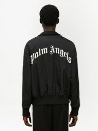 logo-print track jacket Palm Angels updates a classic silhouette with this track jacket. The long-sleeve design is finished with a contrasting rear logo print for a bold update. Made in Italy Composition Polyamide 100%, Polyester 100%