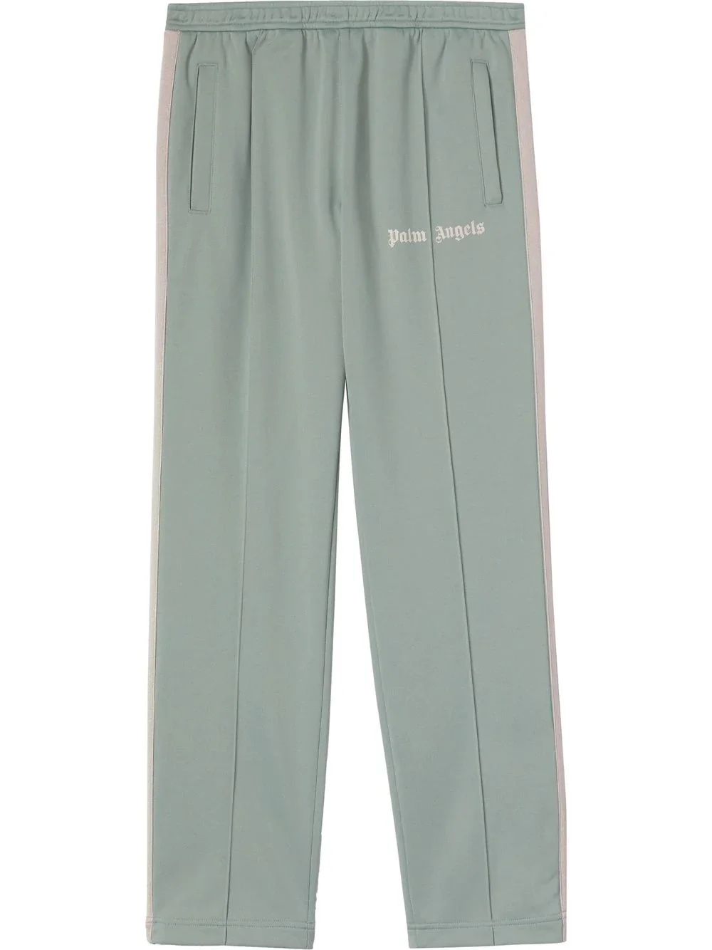 logo-print track pants Produced in a sea-green hue, these Palm Angel's track pants feature a sporty side-stripe detail and logo print to the front for a distinctly branded completion. Made in Italy Composition Lining: Polyester 100% Outer: Polyester 100%