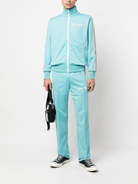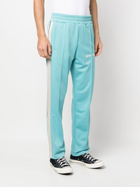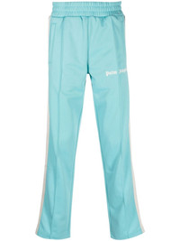 logo-print track pants Reaching a balance between comfort and style, Palm Angels introduces these track pants, designed with an elasticated waistband. Side stripe detailing and a front logo print add appeal to this laid-back design. Made in Italy Composition Outer: Polyester 100% Lining: Polyester 100% SIZE & FIT Model measurements Height 6 ft 1 in(1.85 m) Bust/Chest 35.82 in(91 cm) Hips 37.79 in(96 cm) Waist 29.13 in(74 cm) FittingInformation This piece fits true to size. We recommend you get your regular size Cut for a slim fit Made with a mid-weight fabric Washing instructions Machine Wash