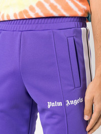 logo-print track pants Inspired by sporty streetwear, Palm Angels presents these vibrant purple track pants in a casual silhouette. Complete with their branding printed to the side, the pair is punctuated by the side stripe detailing, adding to the athletic aesthetic. Made in Italy Composition Outer: Polyester 100% SIZE & FIT Model measurements Height 6 ft 2 in(1.88 m) Bust/Chest 38.18 in(97 cm) Hips 37 in(94 cm) Waist 29.92 in(76 cm) Washing instructions Machine Wash