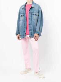 logo-print track pants Inspired by the Los Angeles skateboard scene, Palm Angels creates streetwear garments with a creative yet relaxed feel. In a refined two-tone colourway, this pair of track pants feature a logo print at the side, which ties in with current branding trends and side stripe detailing, which emphasises their sporty feel. Made in Italy Composition Body: Polyester 100% SIZE & FIT Model measurements Height 6 ft 2 in(1.87 m) Bust/Chest 34.25 in(87 cm) Hips 36.22 in(92 cm) Waist 29.52 in(75 cm) FittingInformation This piece fits true to size. We recommend you get your regular size Cut for a slim fit Made with a mid-weight fabric Washing instructions Machine Wash