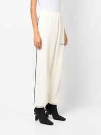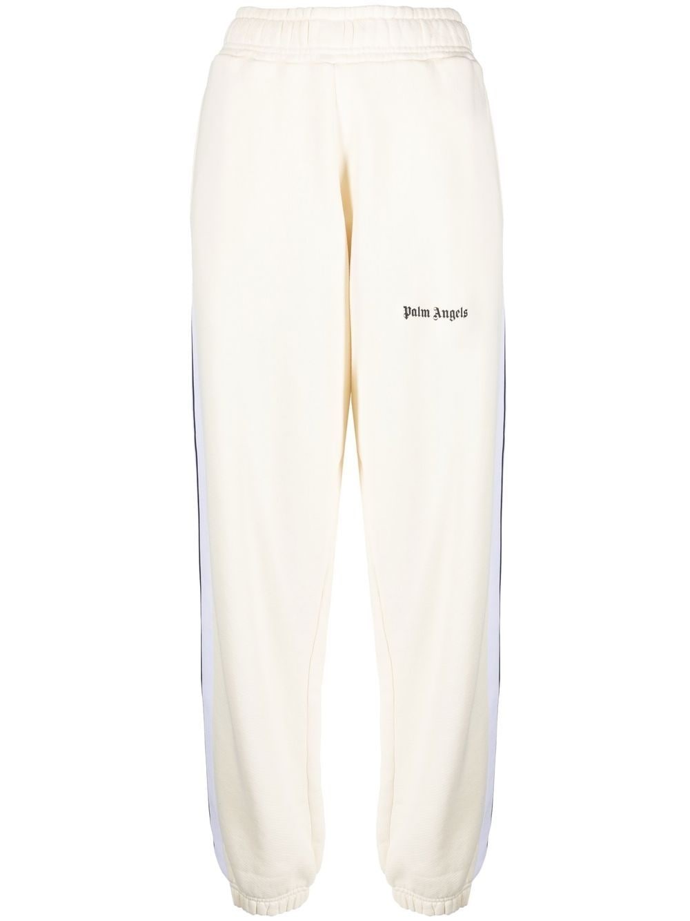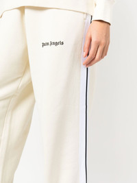logo-print track pants Palm Angels channels its streetwear-inspired aesthetic with these track pants, thanks to side stripe detailing and a logo print to the front for a branded finish. Imported Composition Organic Cotton 100%, Polyester 100% SIZE & FIT Model measurements Height 5 ft 9 in(1.76 m) Bust/Chest 31.88 in(81 cm) Hips 35.43 in(90 cm) Waist 24.8 in(63 cm) FittingInformation This piece fits true to size. We recommend you get your regular size Designed to be loose over the leg with a fitted waist and hem Made with a mid-weight fabric Washing instructions Hand Wash