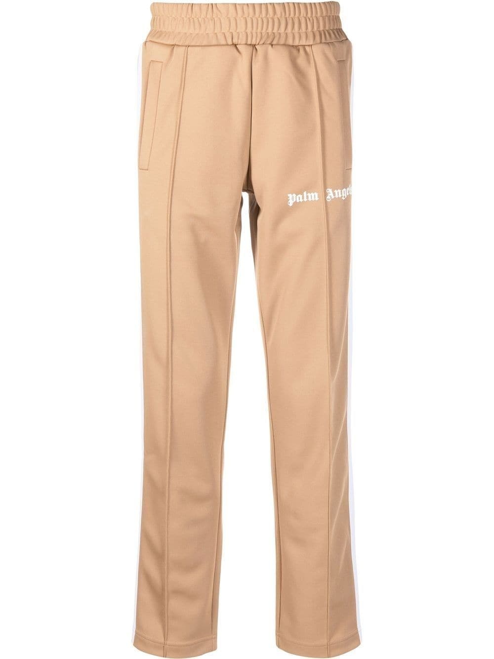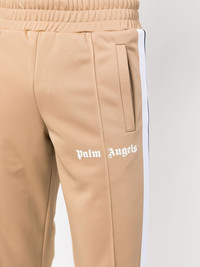 logo-print track pants Palm Angels designs streetwear clothing with a creative yet laid-back vibe, drawing inspiration from the Los Angeles skateboard community. This pair of track pants comes in a sophisticated beige and white colour scheme and includes a logo print at the leg that links in with current branding trends. Made in Italy Composition Outer: Polyester 100% Lining: Polyester 100%