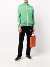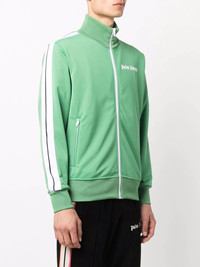 logo-print zip-front track jacket Inspired by American street culture, Palm Angels tells a story through its garments by making use of bold colours and branding prints. This is evidenced with this pale green.track jacket for SS22, which is detailed with a logo print at the chest and white stripes to the side. Made in Italy Composition Outer: Polyester 100% Lining: Polyester 100% SIZE & FIT Model measurements Height 6 ft 1 in(1.85 m) Bust/Chest 35.82 in(91 cm) Hips 37.79 in(96 cm) Waist 29.13 in(74 cm) FittingInformation This piece fits true to size. We recommend you get your regular size Cut for a loose fit Made with a mid-weight fabric Measurement CHEST 39.37 in(100 cm) SLEEVE LENGTH 23.22 in(59 cm) LENGTH 23.62 in(60 cm) Washing instructions Machine Wash