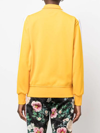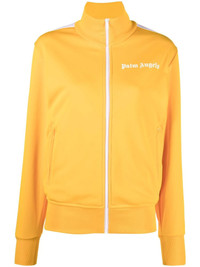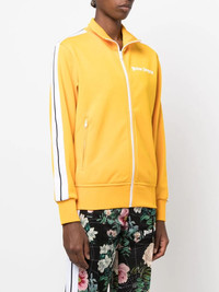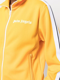 logo-print zip-up track jacket Drawing on inspiration from retro track styles, Palm Angels presents this sporty jacket, defined by its striped detail running down the sleeves. It appears in a bright ochre-yellow hue, showcasing the label's cheerful spirit. Made in Italy Composition Outer: Polyester 100% Lining: Polyester 100% SIZE & FIT Model measurements Height 5 ft 10 in(1.78 m) Bust/Chest 31.49 in(80 cm) Hips 37 in(94 cm) Waist 23.62 in(60 cm) FittingInformation This piece fits true to size. We recommend you get your regular size Designed for a loose fit with a close fit at the waist Made with a mid-weight fabric Washing instructions Machine Wash