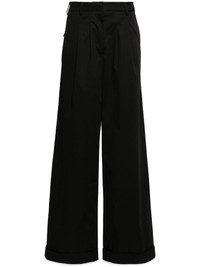logo-tag pleated straight trousers Highlights - Black - Cotton blend - Textured finish - Belt loops - Pleat detailing - Two side slash pockets - Mini logo tag to the rear - Two rear flap pockets - Straight leg - Turn-up cuffs - Contrasting trim Made in Italy Composition Outer: Cotton 95%, Polyester 5% Lining: Cotton 100% SIZE & FIT Model measurements Height 5 ft 9 in(1.75 m) Bust/Chest 34.64 in(88 cm) Hips 36.61 in(93 cm) Waist 26.37 in(67 cm) FittingInformation Designed with a wide-leg cut, these trousers allow for a close fit at the waist and offer a loose and roomy fit over the leg Made from a midweight non-stretch fabric This piece fits true to size – take your usual size Washing instructions Machine Wash