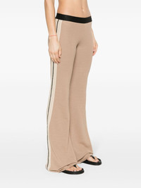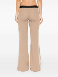 logo-tape knitted flared trousers Highlights - Beige/black - Cotton - Knitted construction - Crochet knit - Elasticated logo waistband - Side stripe detailing - Flared design Made in Italy Composition Cotton 100%, Polyester 80%, Polyamide 10%, Elastane 10% SIZE & FIT Model measurements Height 5 ft 11 in(1.8 m) Bust/Chest 33.07 in(84 cm) Hips 37.4 in(95 cm) Waist 25.19 in(64 cm) FittingInformation Designed with a flared hem, these trousers allow for a close fit at the waist with a slim fit over the leg and widening towards the hem The elasticated waist allows for a comfortable fit Made with a midweight knit, this piece offers some stretch This piece fits true to size – take your usual size Washing instructions Hand Wash