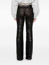 logo-tape trousers Highlights - Black - Stretch-design - Sequin design - Logo-tape detailing - Elasticated waistband - Unlined - Flared Made in Italy Composition Polyamide 92%, Elastane 8% SIZE & FIT Model measurements Height 5 ft 9 in(1.75 m) Bust/Chest 34.64 in(88 cm) Hips 36.61 in(93 cm) Waist 26.37 in(67 cm) FittingInformation Designed with a flared hem, these trousers allow for a close fit at the waist with a slim fit over the leg and widening towards the hem The elasticated waist allows for a comfortable fit Made from a midweight stretch fabric, this piece offers elasticity and flexibility when worn Washing instructions Hand Wash