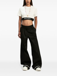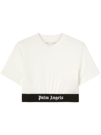logo-underband cotton crop top Highlights - Off-white/black - Cotton - Jersey texture - Logo underband - Crew neck - Short sleeves - Straight hem - Cropped Made in Italy Composition Cotton 100%, Polyamide 56%, Polyester 22%, Elastane 22%