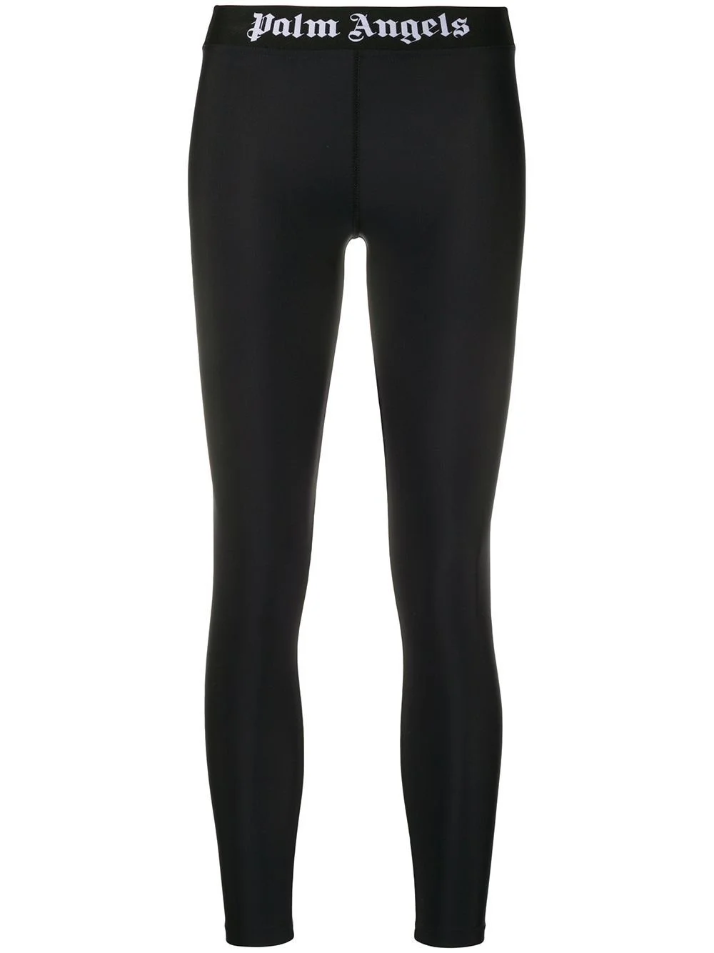 logo-waistband cropped legging Cut for a cropped length, these leggings are adorned with Palm Angels' signature logo-printed waistband, a detail which lends the pair the brand's signature streetwear edge. Made in Italy Composition Polyamide 72%, Spandex/Elastane 28%