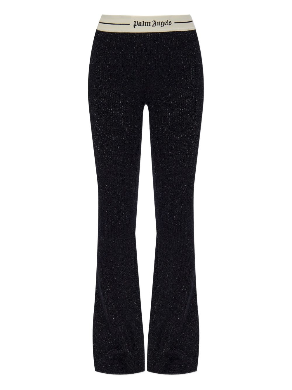 logo-waistband flared trousers Highlights - Black - Ribbed fabric - Elasticated waistband - Logo waistband - Glitter flecks Made in Italy Composition Polyester 91%, Elastane 9% Washing instructions Read Manufacturer Guidelines