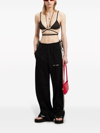 lurex criss-cross bikini top Palm Angels offers a resplendent look in this black bikini top punctuated with flecks of gold-tone lurex glitter. The triangle-cut cups are secured by spaghetti straps and connect to slender straps that wrap around the waist in a criss-cross effect. Highlights - Black/gold-tone - Stretch-design - Lurex detailing - Triangle cup - Spaghetti straps - Rear criss-cross straps - Rear tie fastening - Be mindful to try on swimwear over your own garments. Made in Italy Composition Polyamide 81%, Metallic Fibre 13%, Elastane 6% Washing instructions Read Manufacturer Guidelines