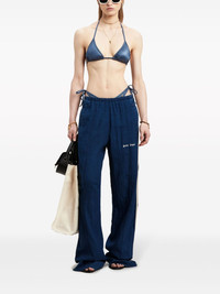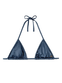 metallic triangle bikini top Highlights - Indigo blue - Stretch-design - Metallic effect - Silver-tone logo plaque - Triangle cup - Halterneck tie fastening - Rear tie fastening - Be mindful to try on swimwear over your own garments. Made in Italy Composition Polyamide 79%, Spandex/Elastane 21% Washing instructions Dry Clean Only