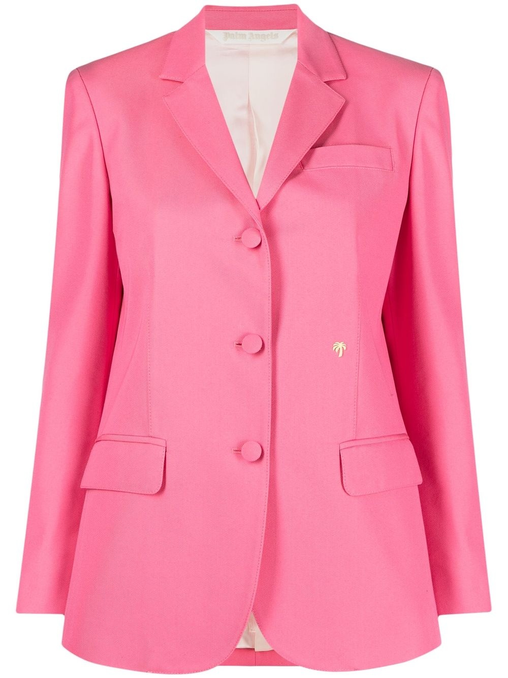 Miami single-breasted blazer Palm Angels' affinity for sharp silhouettes is captured in the clean lines of this bubblegum-pink blazer. Characterised by its single-breasted construction, it's decorated with contrasting palm tree logo embroidery that nods to the label's love of bold branding. Made in Italy Composition Outer: Cotton 70%, Polyester 30% Lining: Viscose 100% SIZE & FIT Model measurements Height 5 ft 10 in(1.79 m) Bust/Chest 31.1 in(79 cm) Hips 35.03 in(89 cm) Waist 24.01 in(61 cm) FittingInformation This piece fits true to size. We recommend you get your regular size Cut for a slim fit Made with a mid-weight non-stretch fabric Washing instructions Machine Wash