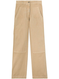 mid-rise straight-leg trousers Highlights - Beige - Cotton - Mini logo tag - Belt loops - Button fly fastening - Mid-rise - Straight leg - Two front patch pockets - Side patch pocket - Two rear patch pockets - Straight hem Made in Italy Composition Cotton 100% SIZE & FIT FittingInformation Designed with a wide-leg cut, these trousers allow for a close fit at the waist and offer a loose and roomy fit over the leg This piece fits true to size – take your usual size