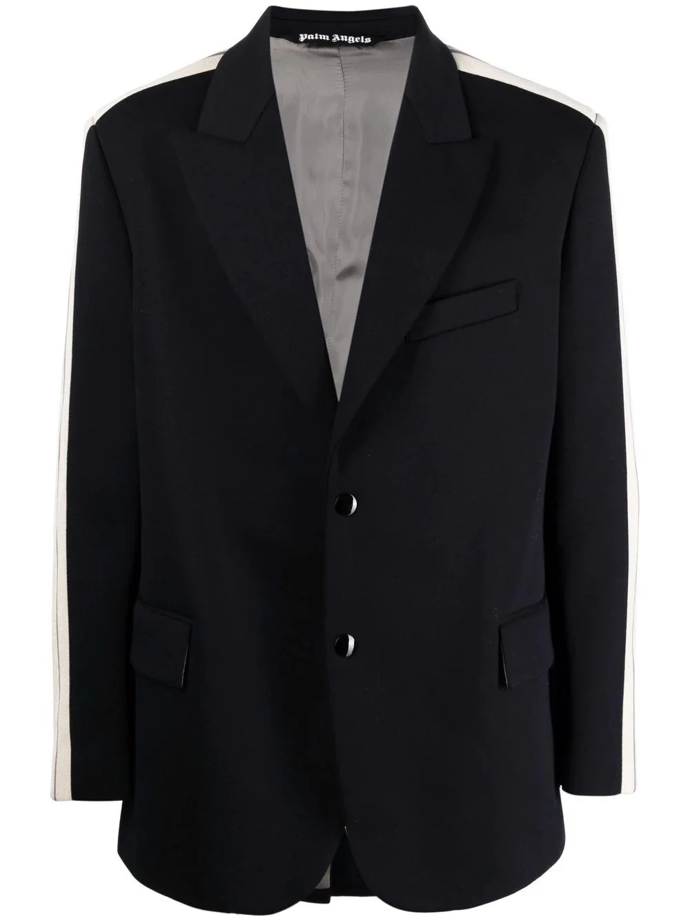 Milano side-stripe blazer A key Palm Angels design, the side-stripe detailing adds a sports-style touch to this blazer. This contrasts with the classic silhouette for an unpredictable and eye-catching look. Made in Italy Composition Outer: Cotton 52%, Polyester 48% Lining: Viscose 100% Washing instructions Dry Clean Only