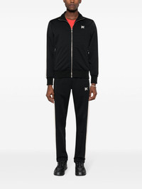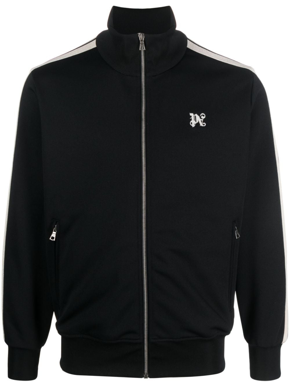 monogram-embroidered track jacket A signature silhouette for the brand, this black zipped jacket draws inspiration from classic sportswear attire — as shown by its practical zip fastening and relaxed fit. Palm Angels' signature stripe motif and monogram punctuate the design in a contrasting white colour. Highlights - Black - Stand-up collar - Front zip fastening - Embroidered logo at the chest - Side stripe detailing - Two side zip-fastening pockets - Elasticated hem - Elasticated cuffs Made in Italy Composition Outer: Polyester 100% Lining: Polyester 100% SIZE & FIT Model measurements Height 6 ft 2 in(1.88 m) Bust/Chest 36.61 in(93 cm) Hips 35.82 in(91 cm) Waist 27.95 in(71 cm) Measurement CHEST 37.99 in(96.5 cm) SLEEVE LENGTH 23.5 in(59.7 cm) LENGTH 24.01 in(61 cm) WAIST 34.01 in(86.4 cm) FittingInformation Designed for a relaxed fit, this piece allows for comfort and movement when worn The ribbed hem offers a close, comfortable fit Made from a midweight non-stretch fabric, this piece offers minimal elasticity when worn This piece fits true to size – take your usual size Washing instructions Hand Wash