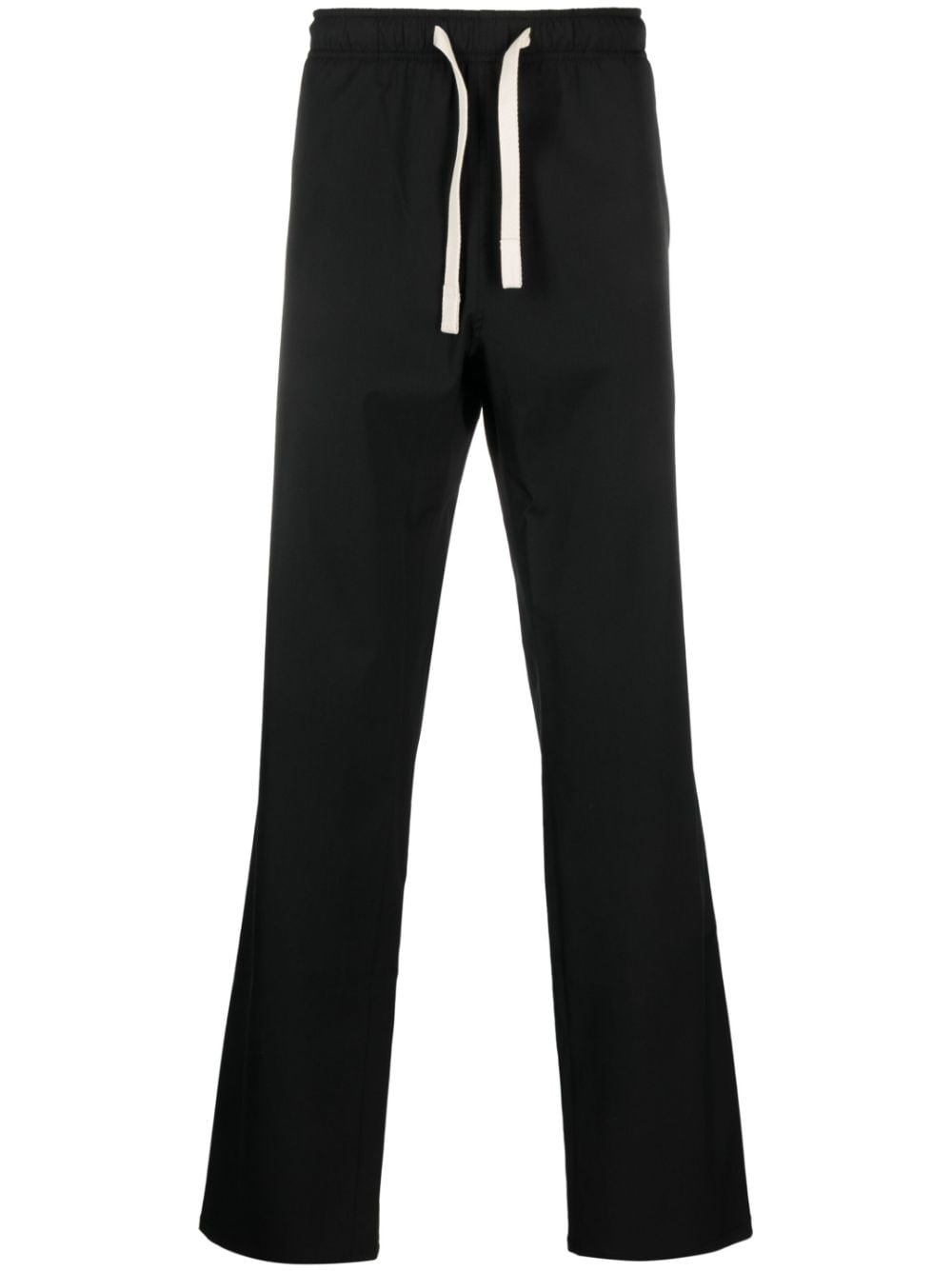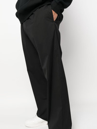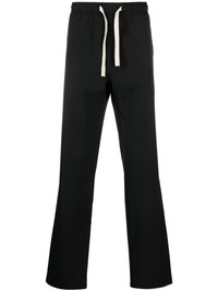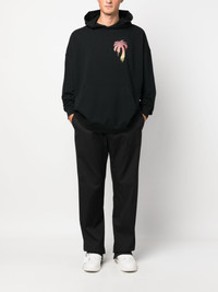 monogram-embroidered straight-leg trousers These black Palm Angels' trousers reference the label’s hallmark track pants with their elasticated drawstring waist and relaxed straight-leg cut, but feature smart considered details like buttoned jetted pockets and contrasting moniker embroidery at the back. Highlights - Black - Stretch-design - Embroidered monogram - Elasticated drawstring waistband - Two side slit pockets - Two rear button-fastening jetted pockets - Straight leg Made in Italy Composition Outer: Polyester 55%, Virgin Wool 43%, Elastane 2% Lining: Cotton 100% SIZE & FIT Model measurements Height 6 ft 2 in(1.89 m) Bust/Chest 38.97 in(99 cm) Hips 38.18 in(97 cm) Waist 32.28 in(82 cm) Measurement FRONT RISE 12 in(30.5 cm) INSIDE LEG 34.48 in(87.6 cm) BACK RISE 14.48 in(36.8 cm) HIPS 42 in(106.7 cm) Hem Width 20 in(50.8 cm) WAIST 32 in(81.3 cm) FittingInformation Designed for a straight-leg, allowing for an unrestricted and comfortable fit over the leg Made from a midweight stretch fabric, this piece offers elasticity and flexibility when worn This piece fits true to size – take your usual size Washing instructions Dry Clean Only