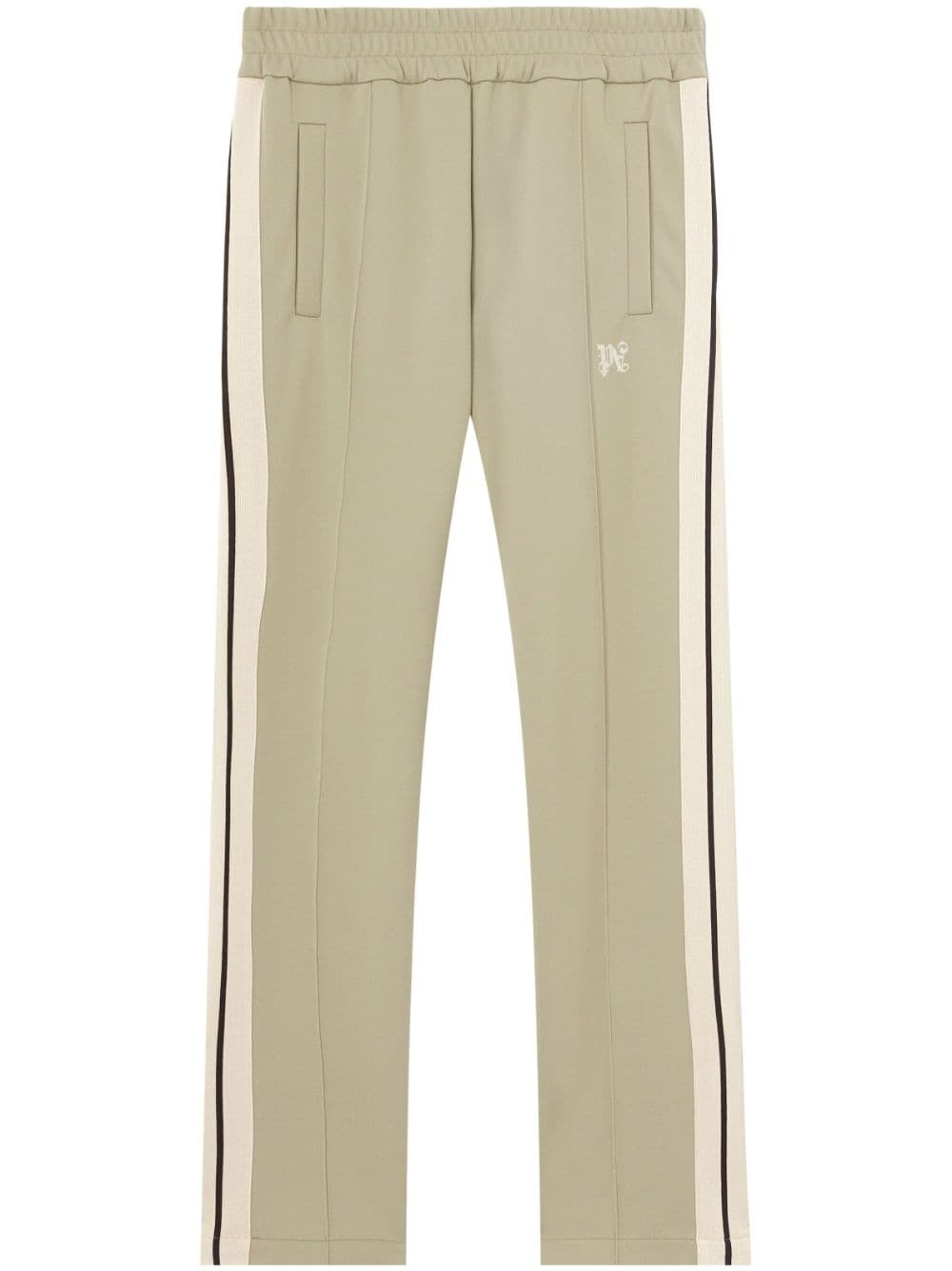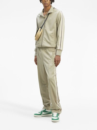 monogram-embroidered striped track pants Highlights - Dark grey/off-white/black - Embroidered monogram - Side stripe detailing - Pressed crease - Elasticated waistband - Straight leg - Two front welt pockets - Short side slits - Straight hem Made in Italy Composition Outer: Polyester 100% Lining: Polyester 100% SIZE & FIT FittingInformation Designed for a relaxed tapered leg, allowing a comfortable loose fit above the knee with a closer fit towards the calves This piece fits true to size – take your usual size