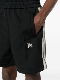 monogram-embroidered track shorts Palm Angels puts its stamp on these athletic side-stripe track shorts through the contrasting logo embroidery to the front. Highlights - Black - Embroidered logo to the side - Side stripe detailing - Elasticated waistband - Two side slit pockets - Above-knee length Made in Italy Composition Outer: Polyester 100% Lining: Polyester 100% SIZE & FIT Model measurements Height 6 ft 0 in(1.84 m) Bust/Chest 36.22 in(92 cm) Hips 35.43 in(90 cm) Waist 26.77 in(68 cm) FittingInformation Designed for a regular fit, offering an even fit over the leg The elasticated waist allows for a comfortable fit Made from a midweight non-stretch fabric, this piece offers minimal elasticity when worn This piece fits true to size – take your usual size Measurement FRONT RISE 13.77 in(35 cm) WAIST 28.34 in(72 cm) Washing instructions Hand Wash