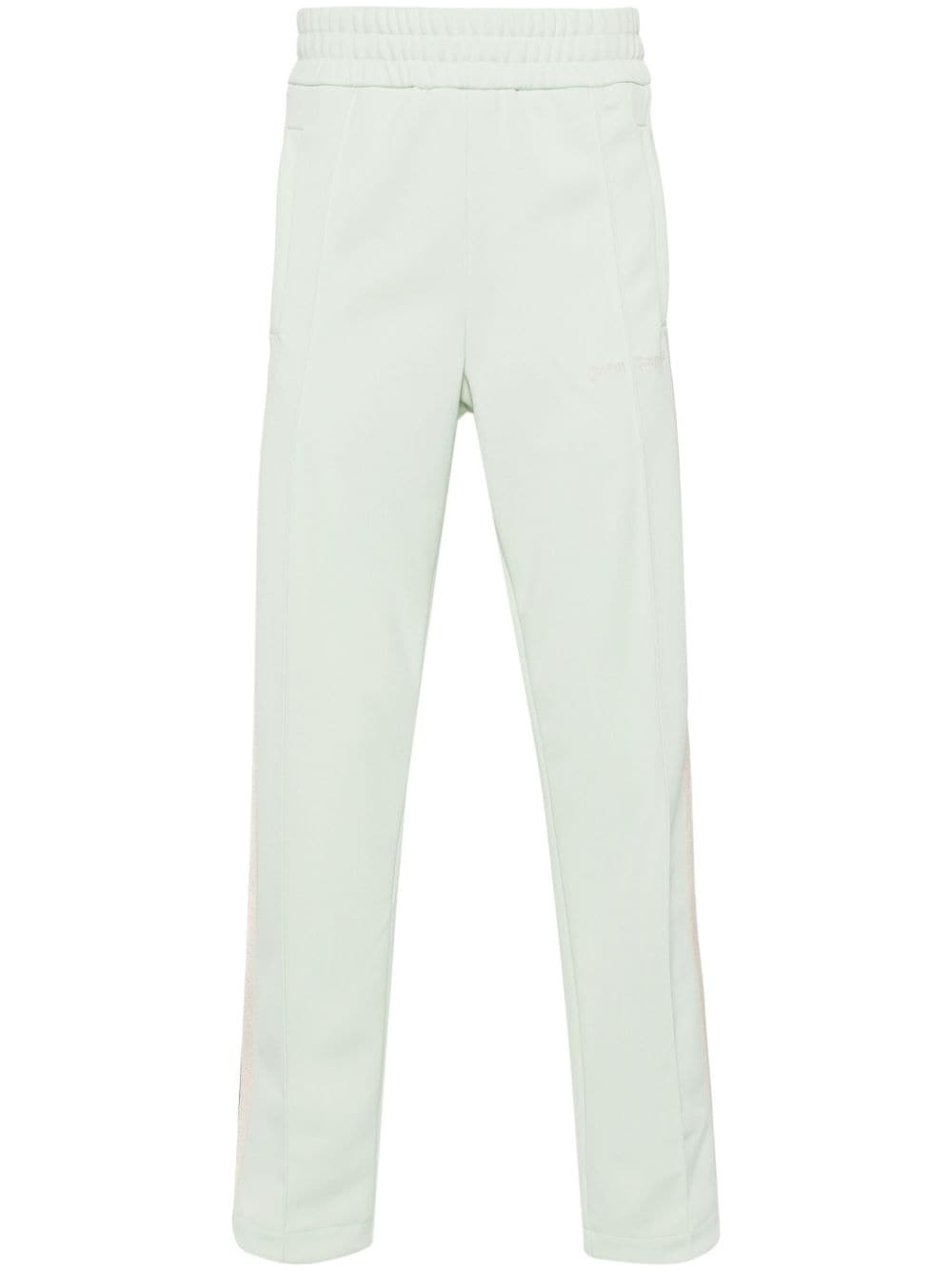 monogram-embroidered track pants Palm Angels channels its streetwear-inspired aesthetic with these mind-green track pants thanks to a relaxed straight-leg silhouette equipped with an elasticated waistband. Meanwhile, contrasting white side stripe detailing and a logo print to the side lend a branded finish. Highlights - Mint green - Elasticated waistband - Side stripe detailing - Two side slit pockets - Seam detailing - Embroidered logo to the front - Ankle zips Made in Italy Composition Lining: Polyester 100% Outer: Polyester 100% SIZE & FIT Model measurements Height 6 ft 0 in(1.84 m) Bust/Chest 35.82 in(91 cm) Hips 37 in(94 cm) Waist 28.34 in(72 cm) FittingInformation Designed for a slim fit, offering a comfortable fit that sits just away from the leg The elasticated waist allows for a comfortable fit Made from a midweight non-stretch fabric, this piece offers minimal elasticity when worn This piece fits true to size – take your usual size Washing instructions Hand Wash