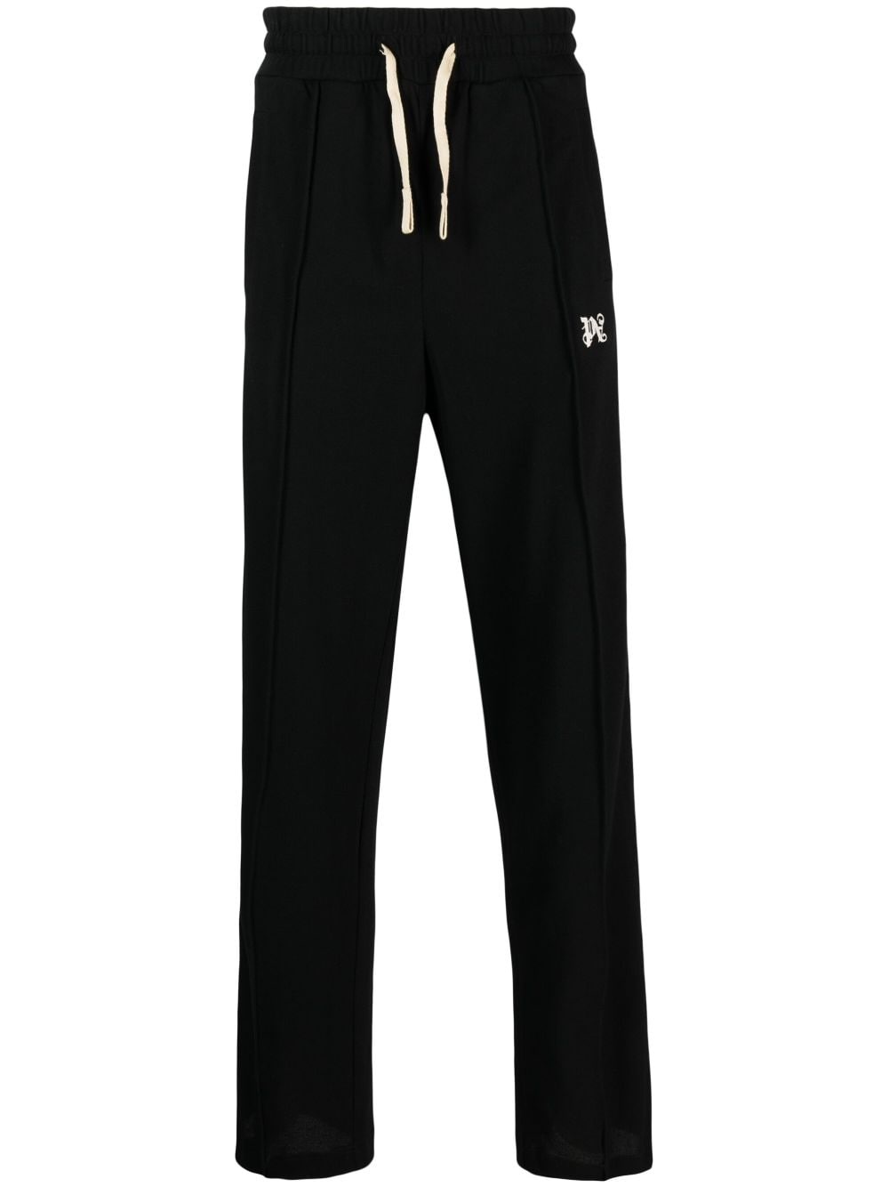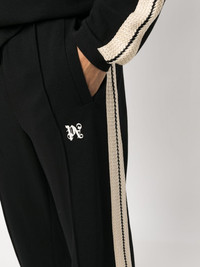 monogram-embroidered track pants Highlighted with striped tape to the sides, these Palm Angels' track pants are rendered in a black and contrasting off-white colourway. They feature a straight-leg shape with exposed seams through the front and an embroidered logo at the leg. Highlights - Black/white - Cotton - Embroidered logo - Side stripe detailing - Elasticated waistband - Straight leg - Ankle-length Made in Italy Composition Cotton 100%, Polyester 100% SIZE & FIT Model measurements Height 6 ft 2 in(1.87 m) Bust/Chest 38.18 in(97 cm) Hips 36.61 in(93 cm) Waist 29.13 in(74 cm)