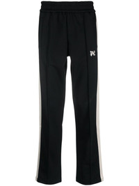 monogram-embroidered track pants Palm Angels takes inspiration from the relaxed Californian lifestyle, as seen with these track pants. They're embellished with the iconic monogram, embroidered in contrasting white threads. Highlights - Black/white - Embroidered logo - Side stripe detailing - Elasticated waistband - Two side inset pockets - Straight leg Made in Italy Composition Outer: Polyester 100% Lining: Polyester 100% SIZE & FIT Model measurements Height 6 ft 2 in(1.88 m) Bust/Chest 36.61 in(93 cm) Hips 35.82 in(91 cm) Waist 27.95 in(71 cm) Washing instructions Hand Wash