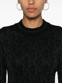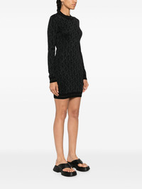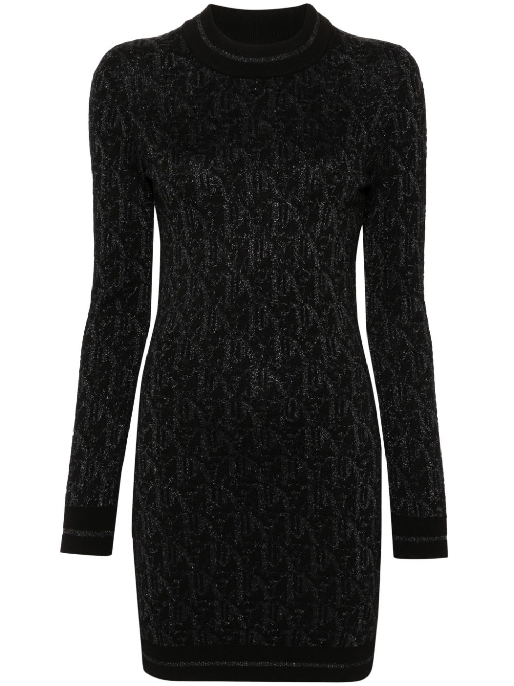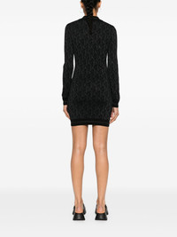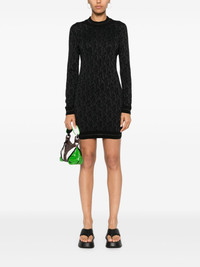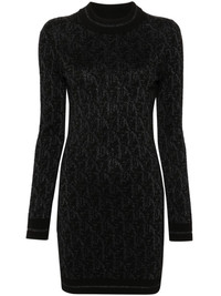 monogram-jacquard mini dress Palm Angels' iconic monogram is emblazoned across this minidress in shimmering threads, elevating the sleek bodycon silhouette. Highlights - Black - Monogram jacquard - Metallic threading - Ribbed trim - Striped tipping - Crew neck - Long sleeves - Ribbed hem - Unlined - Pull-on style Made in Italy Composition Viscose 87%, Polyester 12%, Polyamide 1% SIZE & FIT Model measurements Height 5 ft 10 in(1.78 m) Bust/Chest 33.07 in(84 cm) Hips 36.61 in(93 cm) Waist 24.8 in(63 cm) FittingInformation Designed for a close fit throughout Made with a midweight knit, this piece offers some stretch This piece fits true to size – take your usual size