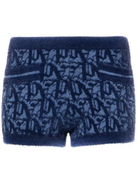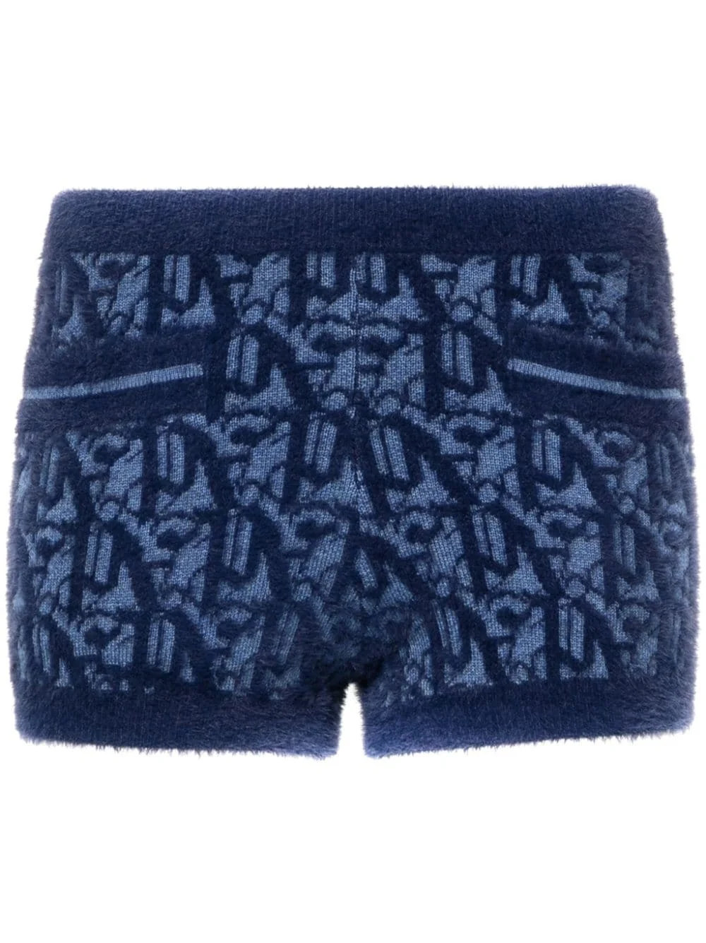 monogram-jacquard knitted shorts Palm Angels takes cues from vintage wares to inspire the fabrication of these mini shorts. They’re woven with a fuzzy monogram jacquard to match the brushed trims. Highlights - Navy blue, light blue - Knitted construction - Brushed effect - Monogram jacquard - Elasticated waistband - Two front welt pockets - Stripe trim Made in Italy Composition Polyamide 62%, Virgin Wool 38% SIZE & FIT Model measurements Height 5 ft 11 in(1.8 m) Bust/Chest 31.49 in(80 cm) Hips 36.61 in(93 cm) Waist 24.4 in(62 cm) FittingInformation Designed for a close fit throughout The elasticated waist allows for a comfortable fit Made with a midweight knit, this piece offers some stretch This piece fits true to size – take your usual size Washing instructions Hand Wash