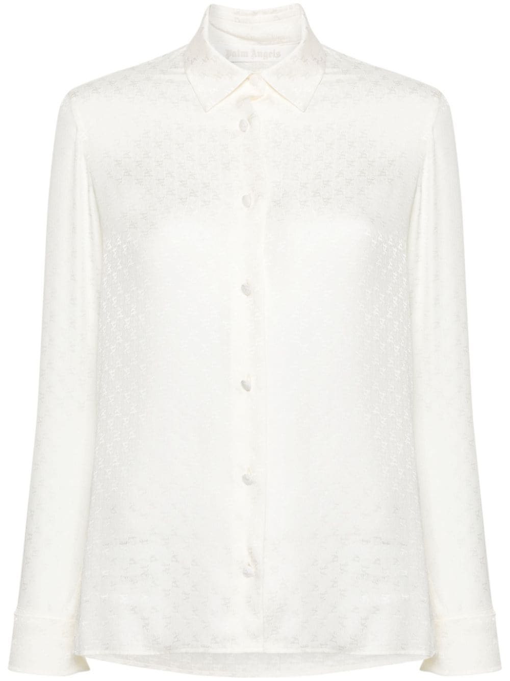 monogram-jacquard silk shirt Highlights - Off-white - Silk - Monogram jacquard - Pointed flat collar - Front button fastening - Long sleeves - Buttoned cuffs - Straight hem Imported Composition Silk 100% SIZE & FIT Model measurements Height 5 ft 11 in(1.8 m) Bust/Chest 31.49 in(80 cm) Hips 36.61 in(93 cm) Waist 24.4 in(62 cm) FittingInformation Designed for a slim fit that sits just away from the body offering a close yet comfortable fit Made from a lightweight non-stretch fabric This piece fits true to size – take your usual size Washing instructions Dry Clean Only