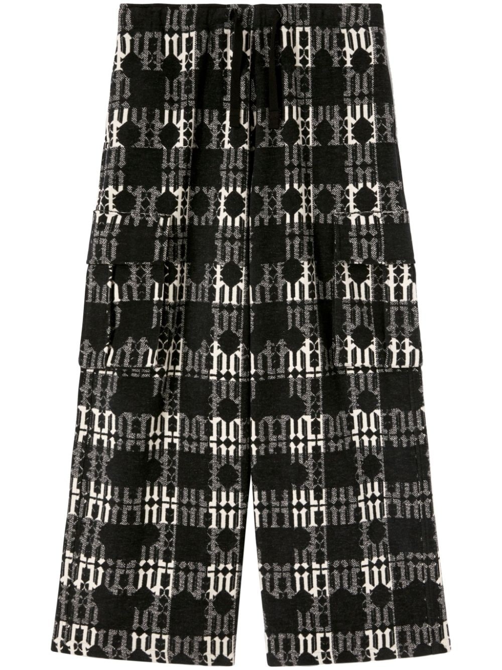 monogram-jacquard wide-leg trousers Highlights - Black/grey - Cotton - Monogram jacquard - Mid-rise - Drawstring fastening waist - Wide leg - Slip pockets to the sides - Two side cargo pockets Made in Italy Composition Outer: Cotton 100% Lining: Cotton 100%