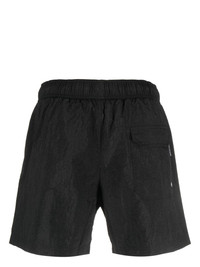 monogram-appliqu� swim shorts Palm Angels presents these swimming shorts for a classic look. Crafted in creased black, they're finished with the PA monogram patched at the leg for a final branding touch. Highlights - Black - Crease effect - Logo patch to the front - Elasticated drawstring waistband - Two side slit pockets - Rear flap pocket - Be mindful to try on swimwear over your own garments. Made in Italy Composition Lining: Polyester 100% Outer: Silicone 100%, Polyamide 100% SIZE & FIT Measurement LENGTH 15.35 in(39 cm) WAIST 26.77 in(68 cm) Washing instructions Machine Wash