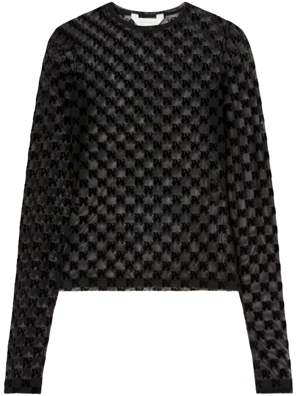 monogram-pattern sheet top Highlights - Jet black - Stretch-design - Semi-sheer construction - Monogram pattern - Round neck - Extra-long sleeves - Straight hem Made in Italy Composition Polyamide 88%, Spandex/Elastane 12% Washing instructions Read Manufacturer Guidelines