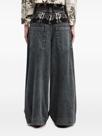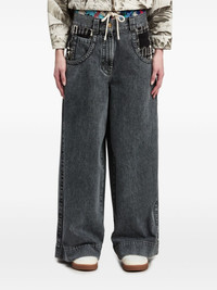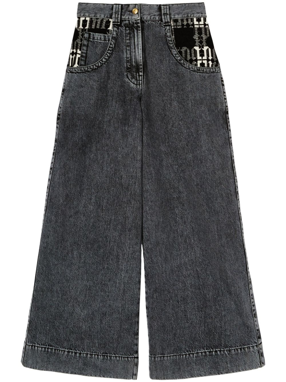 monogram-pattern wide-leg jeans Highlights - Black - Cotton - Washed denim - Monogram pattern - Logo patch to the rear - Belt loops - Concealed fly and button fastening - Low-rise - Wide leg - Classic five pockets Made in Italy Composition Outer: Cotton 100%, Leather 100% Lining: Polyester 65%, Cotton 35% Washing instructions Read Manufacturer Guidelines